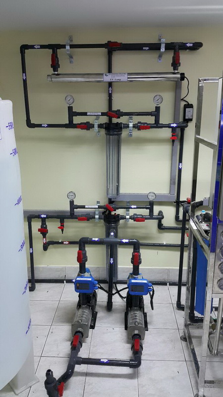 ชุดกรองน้ำบริสุทธิ์ระบบ RO กำลังการผลิตไม่น้อยกว่า 900 ลิตร/ชั่วโมง สำหรับหน่วยไตเทียมสามารถรองรับได้ 12 เตียง พร้อมติดตั้งอ่างสแตนเลสสำหรับล้างตัวกรองไตเทียม
